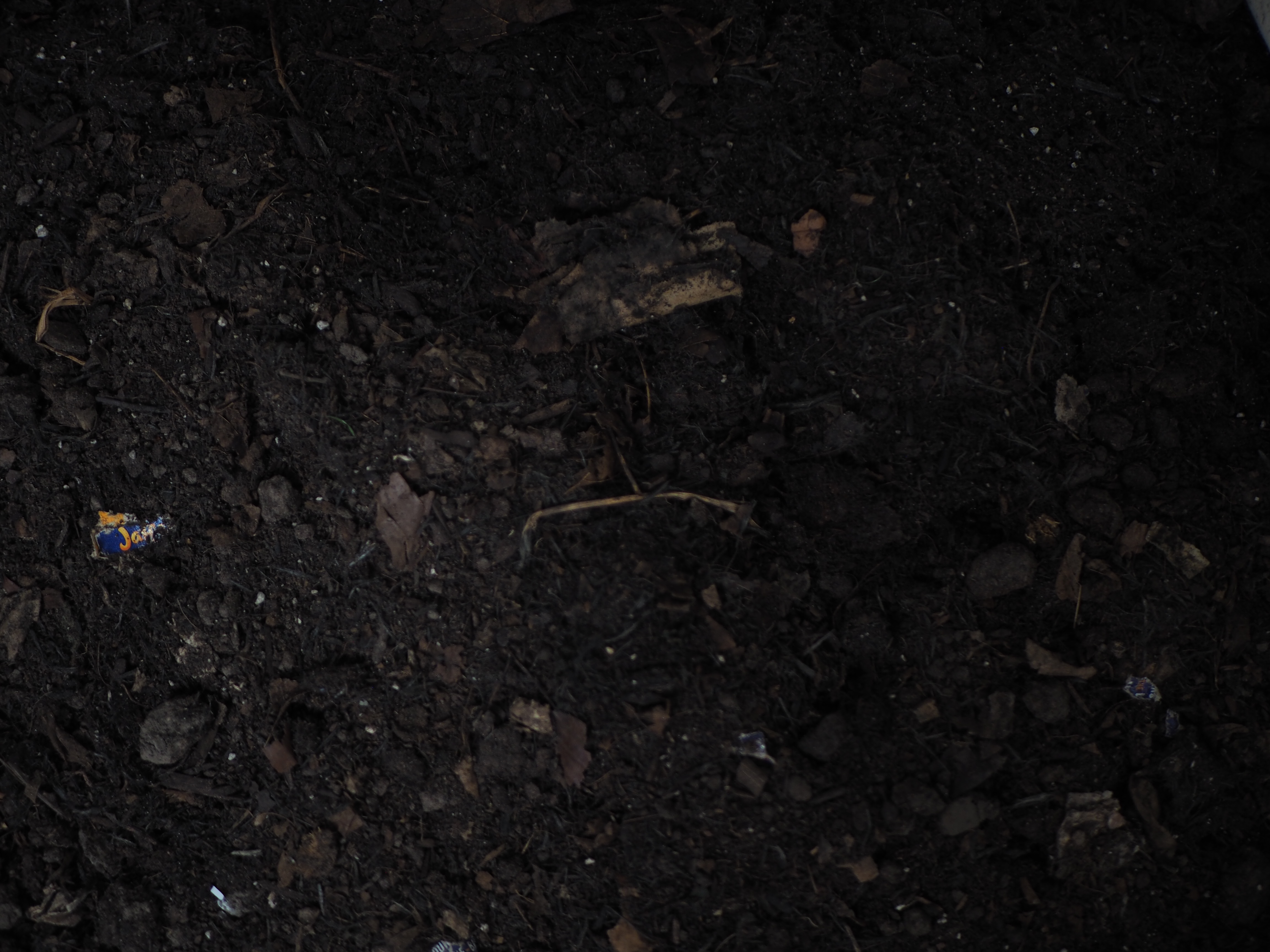 ** Old potting soil, coir, coffee grounds, scoby, fermented ‘organic orange’ peels, leaves from Rosemary Gardens, salvaged paper bags, Jaffa cake boxes, soil food web resident community of organisms